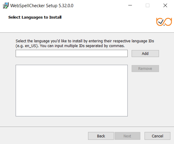 Select the language you'd like to install by entering their respective language IDs (e.g. en_US). You can input multiple IDs separated by commas.